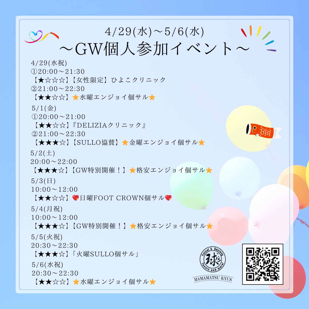 GWも個サルを開催致します🌈